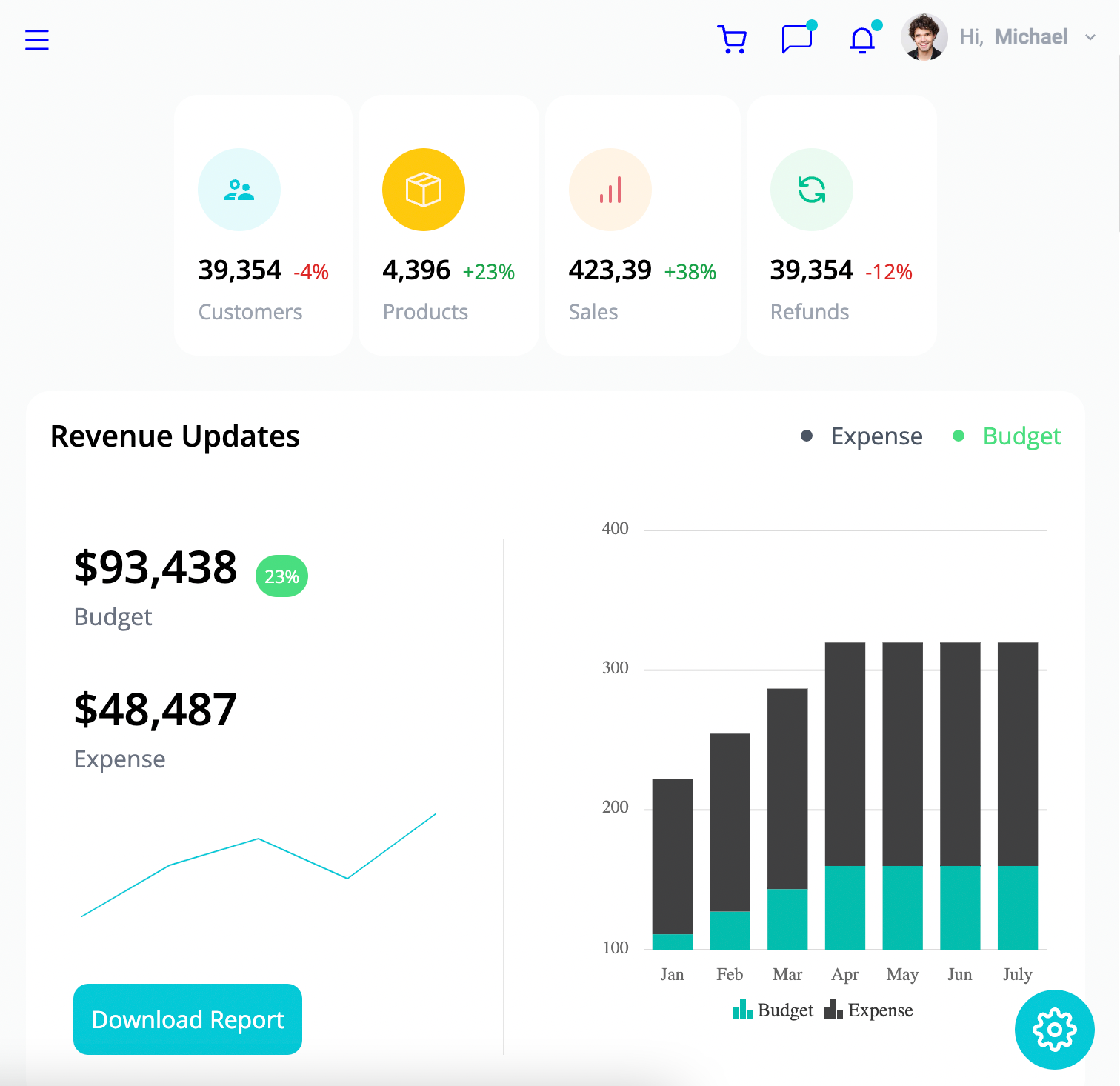React admin dashboard app built with Syncfusion for rapidly developed charts, graphs, and organizational tools for businesses.